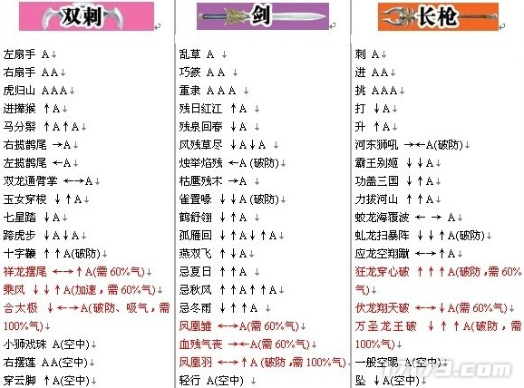 在《流星蝴蝶剑.net》这款游戏里,存在着十多种不同类型的武器,每一种武器都具备一套完备的招式系统,而每一个招式都得依靠特定的指令组合才能够施展出来。举例来说,剑的招式“流星赶月”对应的指令组合是“↓→↑A”,枪的招式“回马枪”所对应的指令组合则是“→↓←A”。