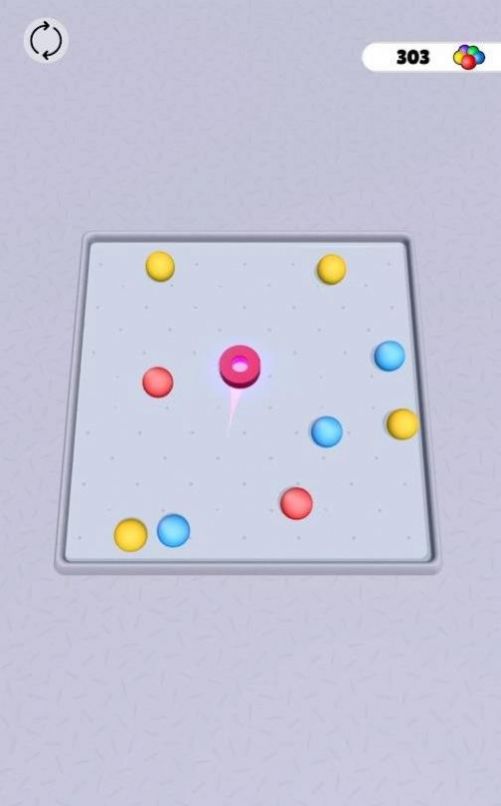 1、进入游戏后,相反方向拖拽圆环,瞄准要击打的球,放手进行弹射;