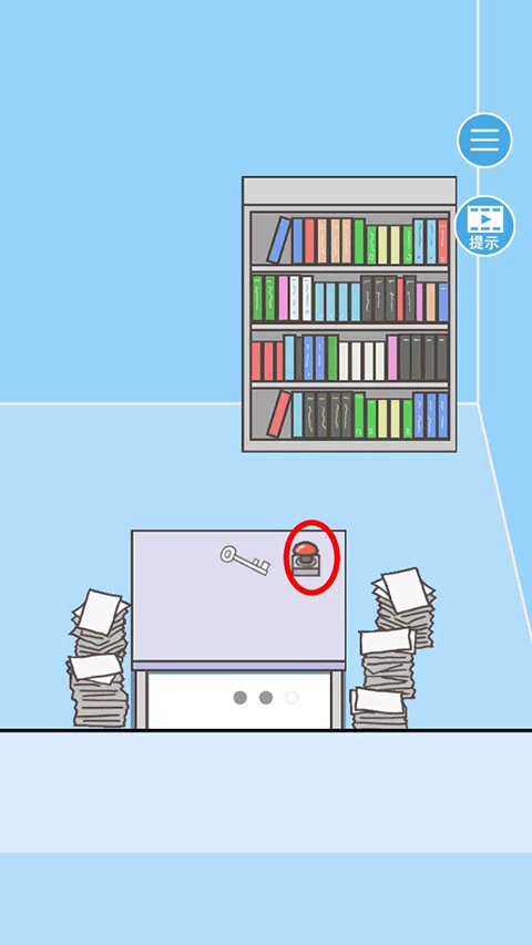 在第三个场景把文件都移开就可以看见一把钥匙和一个开关,但不能用钥匙去开门,因为我们开始游戏的时候是不知道上司在哪的,说不定上司就躲在门口等我们开门。