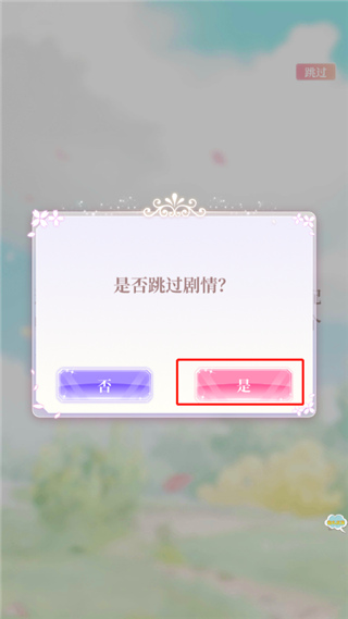 3、这个时候会弹出一个是否跳过剧情?选择是。