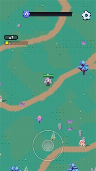 游戏里用虚拟轮盘来操控角色的移动和射击,玩家得灵活避开敌人的弹幕并进行反击,从而消灭敌人。通过滑动轮盘让角色走动还能获取金币。