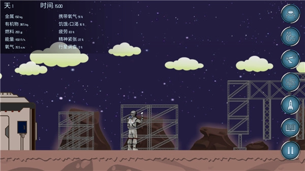 一开始储备的氧气和有机物都比较充足,一千公斤的金属也还够用,不过建造模块的顺序得留意一下。