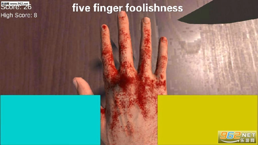 《five finger foolishness手机版》是一款趣味手指模拟恶搞类游戏,游戏采用3D画面场景设计,操作简单,主要考验玩家的敏捷性,你需要快速点击屏幕中对应的颜色来获得分数,一旦点击错误手指就会被刀切中,快来体验吧!