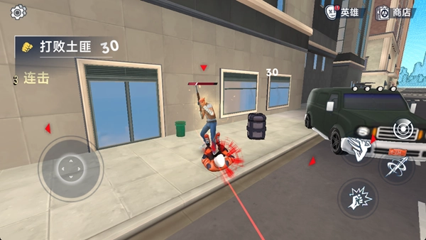 操控英雄在城市环境中移动,借助连招击溃土匪之类的敌人,留意规避攻击,积攒连击数,合理运用道具。