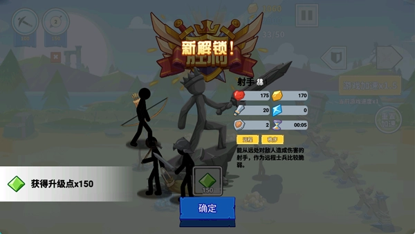 集中力量训练剑士的基础连招,快速闯过战役初期关卡,积攒黄金解锁矿工升级,确保资源供应稳定。