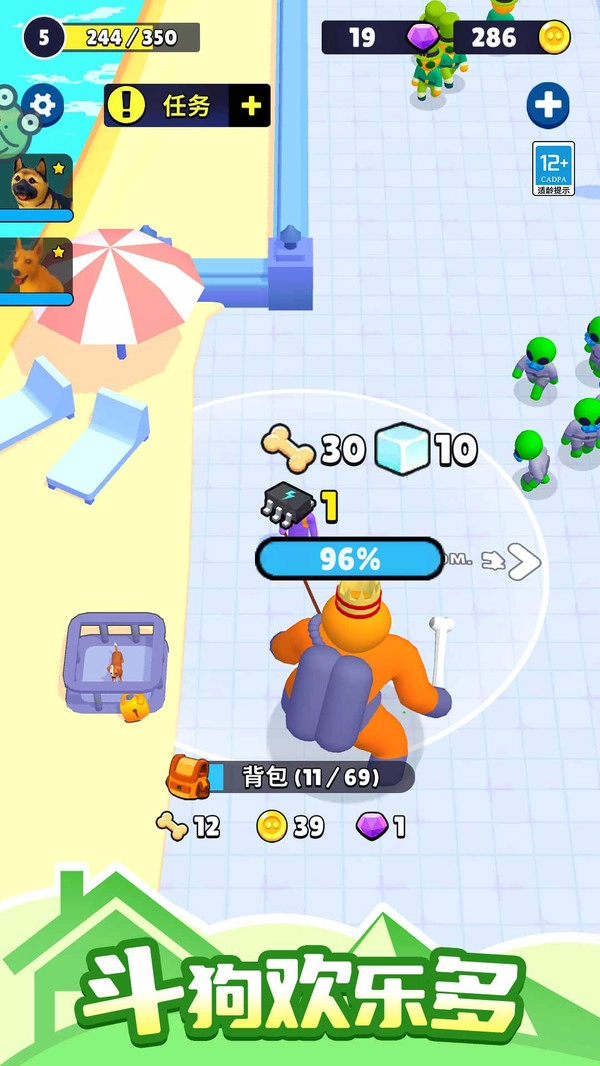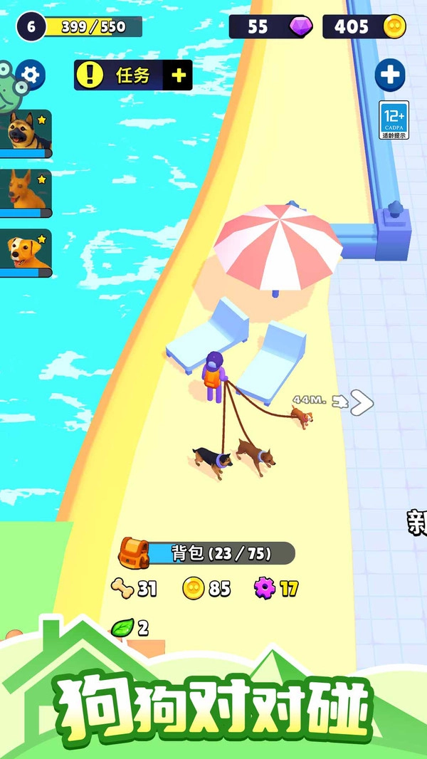 在这里,你只需要一步步解锁不同的狗狗品种,喂养它们就能提升整体战斗力,还能快速找到相关奖励。