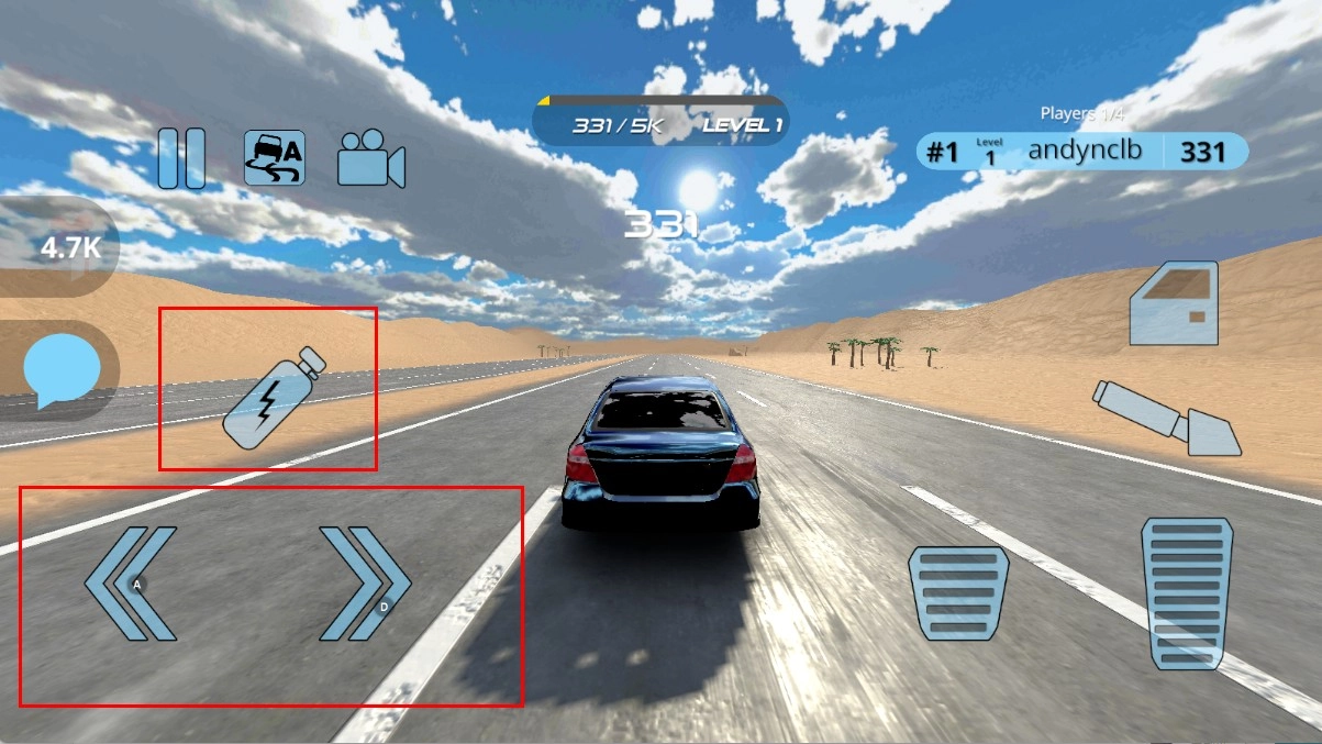 在赛车行驶的过程中,点击左侧的加速道具图标,就能为赛车带来额外的加速效果,助力你在比赛中取得更出色的成绩,与此同时,还可以通过方向按钮来调整赛车的行驶路径。