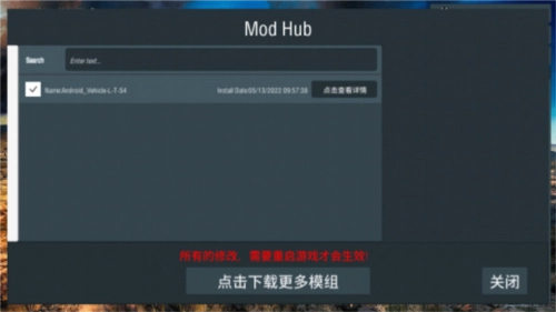 在游戏本地的mod模组文件完成相关操作后,我们需要重启一次游戏,这样才能在游戏里找到mod文件,具体可参考下图。