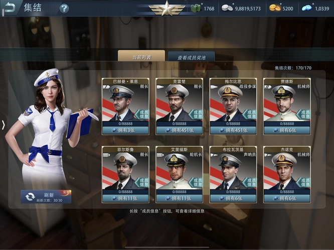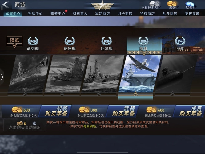 在军需中心能够抽取航母成员,大概二三十次就必定能获得一个五星成员,需要提前准备好金币。