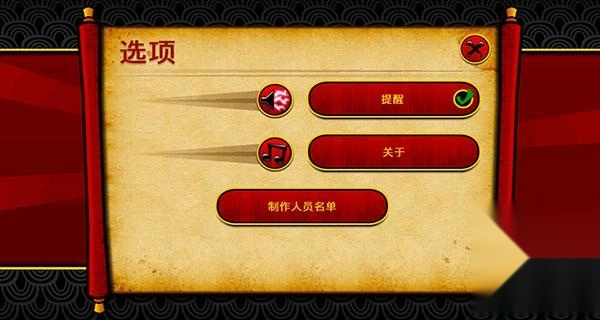 选项这里玩家可以选择声音是否开启和制作人员名单;