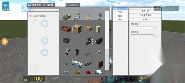 点击菜单,就能添加想要加入的物品、人物或生物,也可以切换场景;