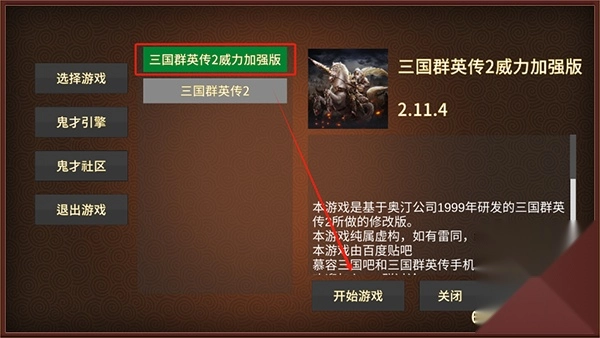 选择【三国群英传威力加强版】点击开始游戏