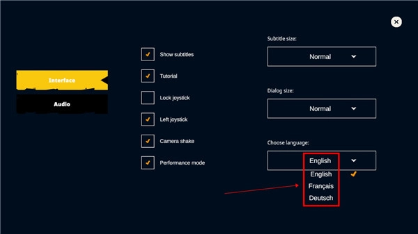 请点击此处右下角的【choose language】语言设置选项。