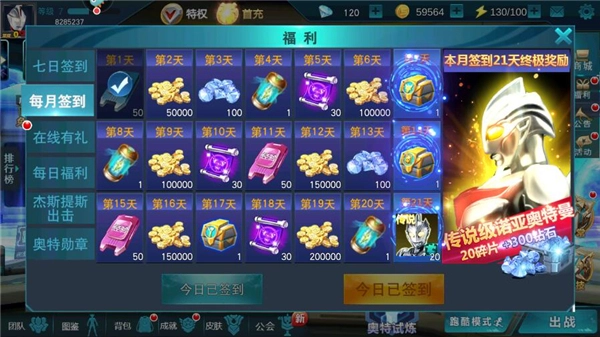 玩家可通过七日签到、每月签到、在线有礼等方式获取钻石,具体可参考下图。
