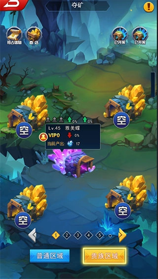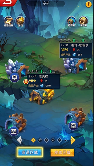 贵族区域与普通区域的矿脉品质存在差异,占领时所需消耗的体力和钻石也有所不同。非VIP玩家同样能够占领贵族区域。