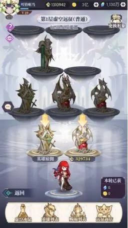 每次完成守卫挑战,都能获取一项增益效果,以及虚空精华、金币之类的奖励;而每通过一层挑战,则可以得到英雄碎片和进阶石作为奖励。