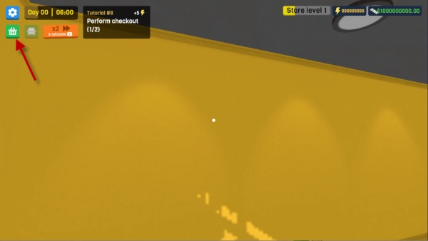 进入游戏后的第一步,我们得先进些货。点击左上角的购物车图标就可以了。
