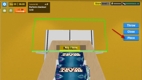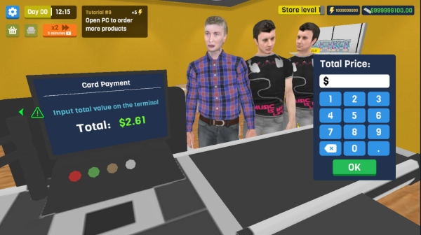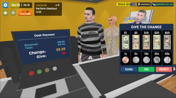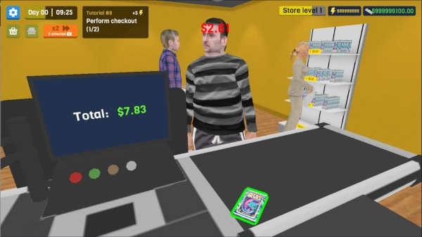 接下来就会有顾客前来购物,你只需依次点击桌上的卡片就能算出价格;要是顾客用现金付款,你还得帮忙找零,这样就能完成这笔交易了。