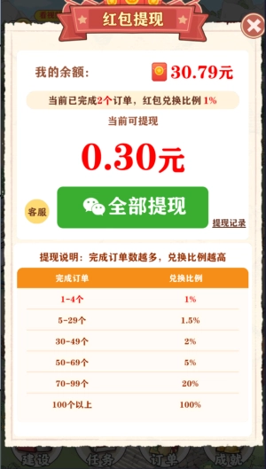 积累的红包均按百分之一的比例计算提现,实际测试都是秒到账!