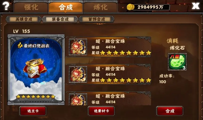 8星幻想装备合成S最佳方式如下: