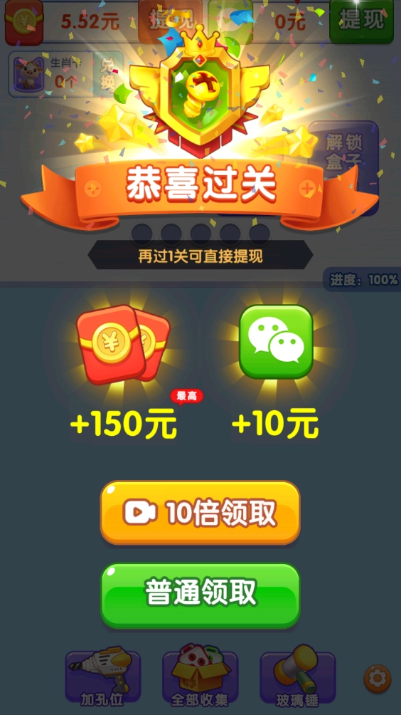 消除所有的螺丝之后就能够过关领到红包奖励了。