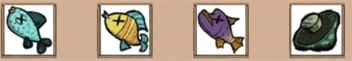 合成配方:四条鱼、四个帽贝二者任选其一即可,也可以是三条鱼搭配一根树枝。