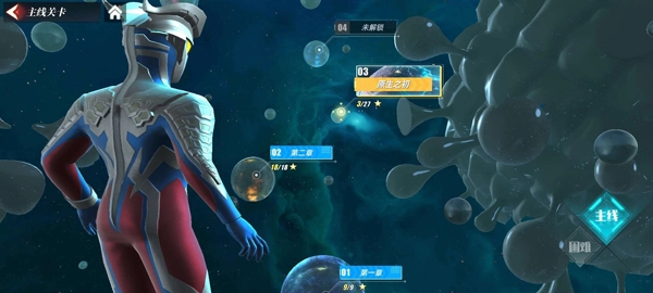 然后返回,点击右下方的剧情选项,选择游戏关卡,再挑选要出战的奥特曼。