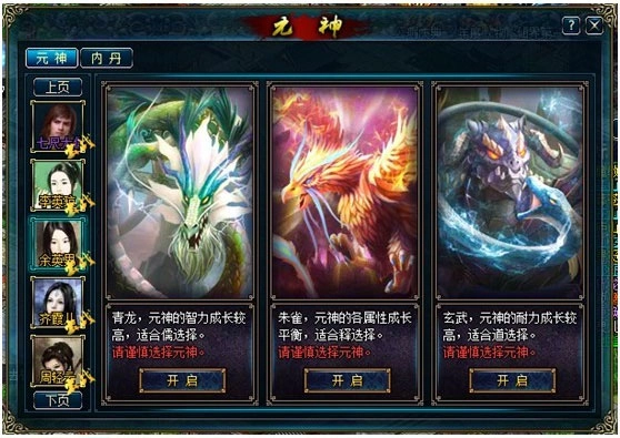 在《蜀山》游戏里,每位散仙等级达到60级后就能拥有一个元神,玩家可以从青龙、朱雀、玄武这三种元神里挑选一种。