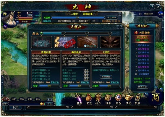 玩家能在游戏里通过触发机制开启天劫,全服玩家将以成功渡劫为目标,待最终渡劫完成,游戏便会解锁全新篇章!
