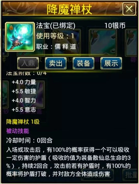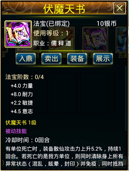 玩家可以为自己的散仙购买强力的心法来增强战力哦。