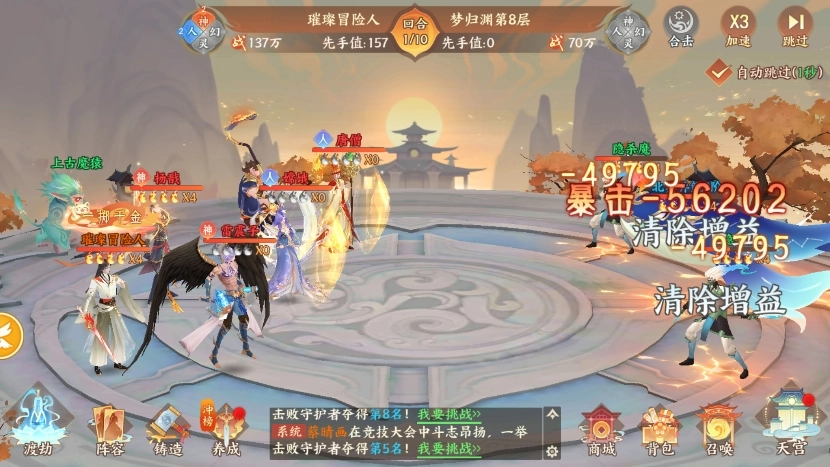 上位阵容:这套阵容的核心在于唐僧与猪八戒的套盾及清buff能力,雷震子作为相柳的上位替代,兼具群奶与减伤效果,能提供更优的输出环境,再依靠杨戬、应龙实现快速收割,将敌方主力输出一波带走,达成迅速减员的目的。