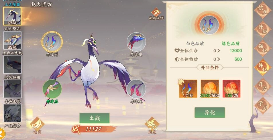 提及山海异兽,各位神君想必最关注的便是它们的进化之道——毕竟能吞天噬地、养成一只称霸山海大荒的顶尖异兽,是每一位神君心中的山海梦想。在《守卫山海》这款游戏里,若想让异兽进化,可通过异化其四个身体部位来实现。而异化所需的材料,能从异兽隐界副本、异兽传记副本以及异兽商店中获取对应部位的材料。当四个部位都成功异化为更高品质后,就可以前往生品界面进行突破进化了!