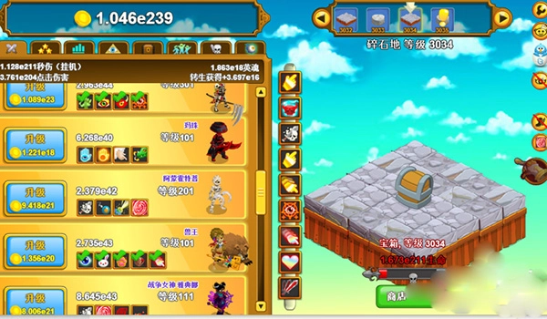 你可以招募45位风格各异的英雄来为你输出伤害,甚至无需手动点击操作!