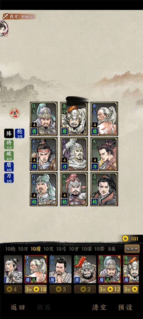 请注意,不同品质的武将都设有最低数量要求。在名将之弈游戏的初始阶段,系统会依据您招募到的武将,自动完成卡组列表的填充。