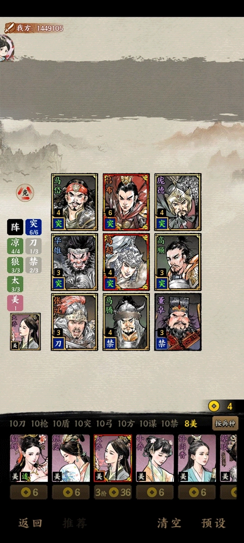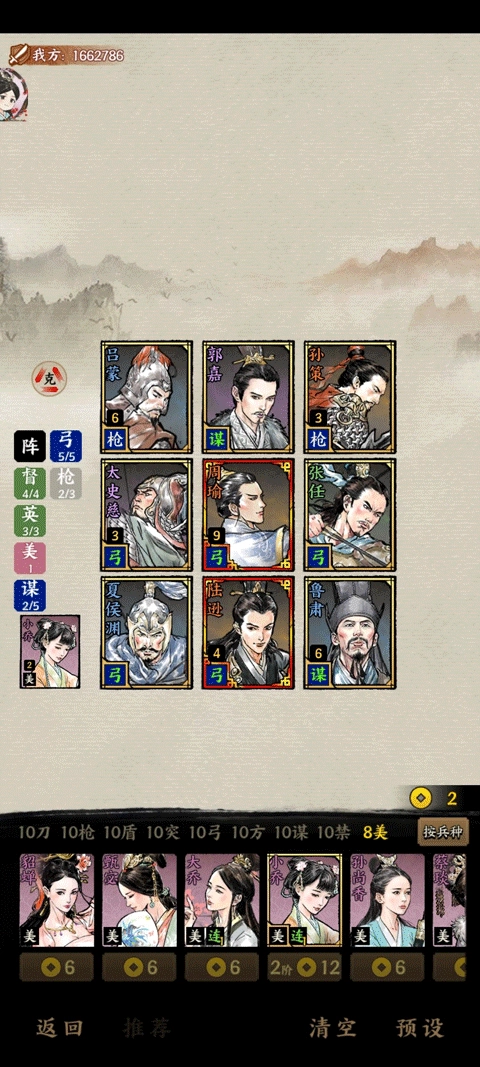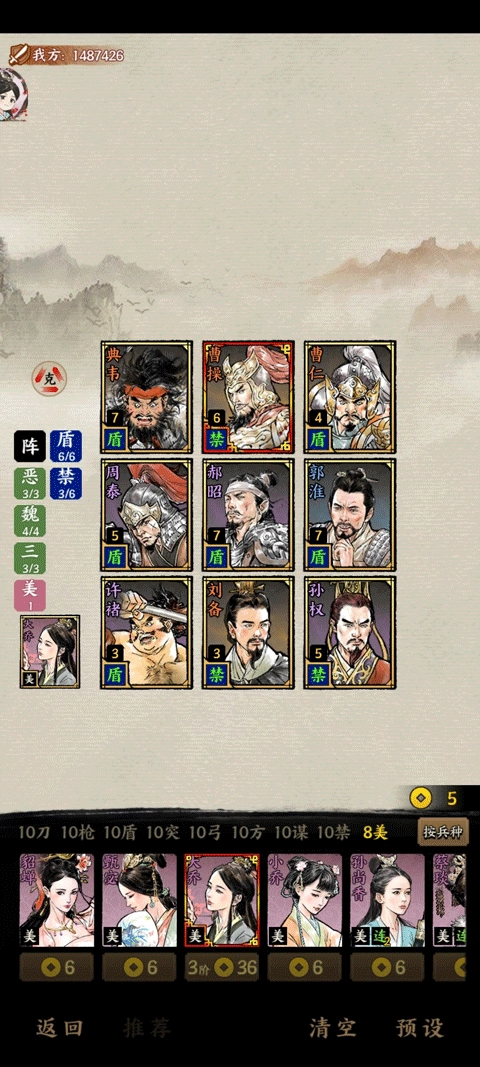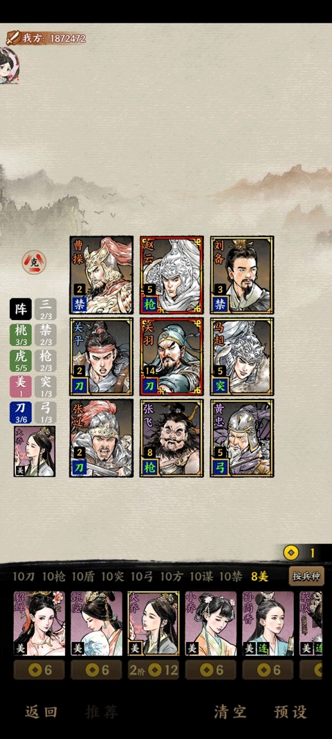 创新采用九宫格交替战斗模式,巧妙运用兵种克制机制,还能邀请美人角色前来助阵,使策略搭配的维度更加丰富多元。