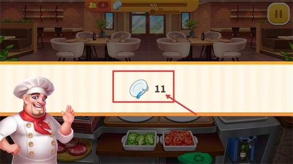 进入场景后,注意观察厨师身旁显示的【盘子-11】标识,它所代表的是当前持有的餐盘数量,后续需要对这些餐盘进行合理规划使用,才能顺利完成订单。