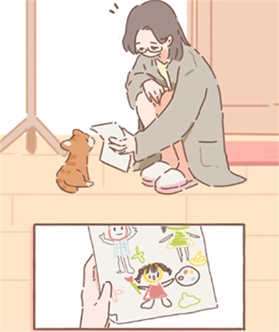 猫咪把图画给妈妈,打开心结,获得理解,通关。