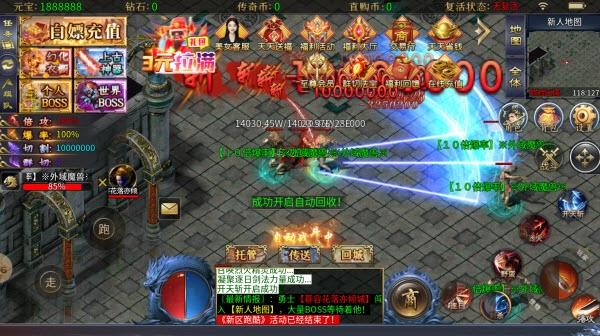 这是一款超变版传奇,但不存在秒杀机制;怪物与BOSS会掉落各类装备和材料,只要愿意投入时间就能提升实力,不氪金也能顺利通关,绝非快餐服。