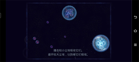 完成第一个任务后会开启第二个任务,此时玩家需要撞击那些体积较小的尘埃并将它们吸收掉。