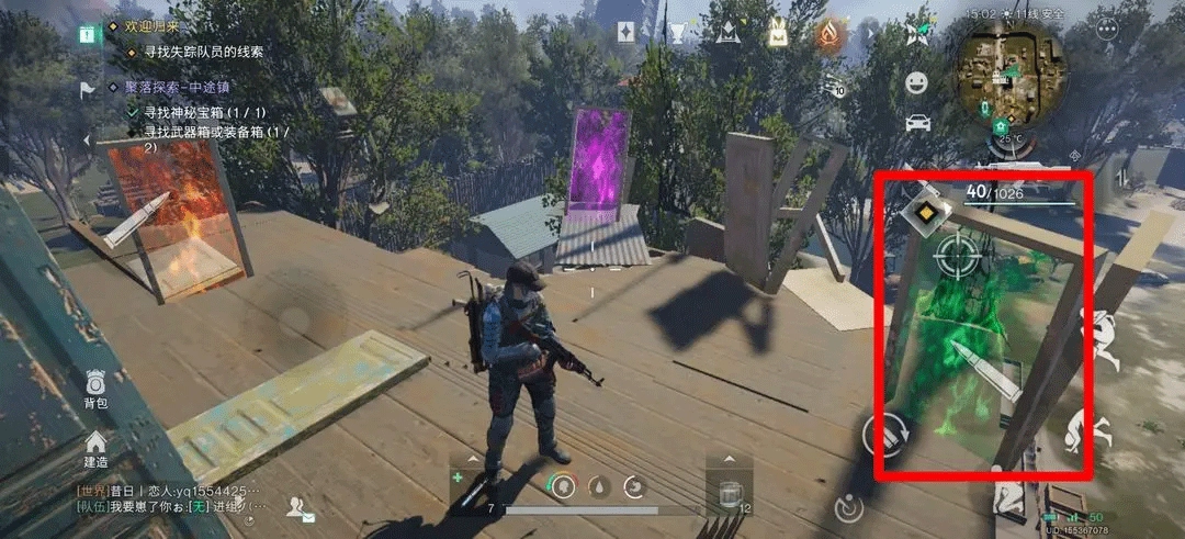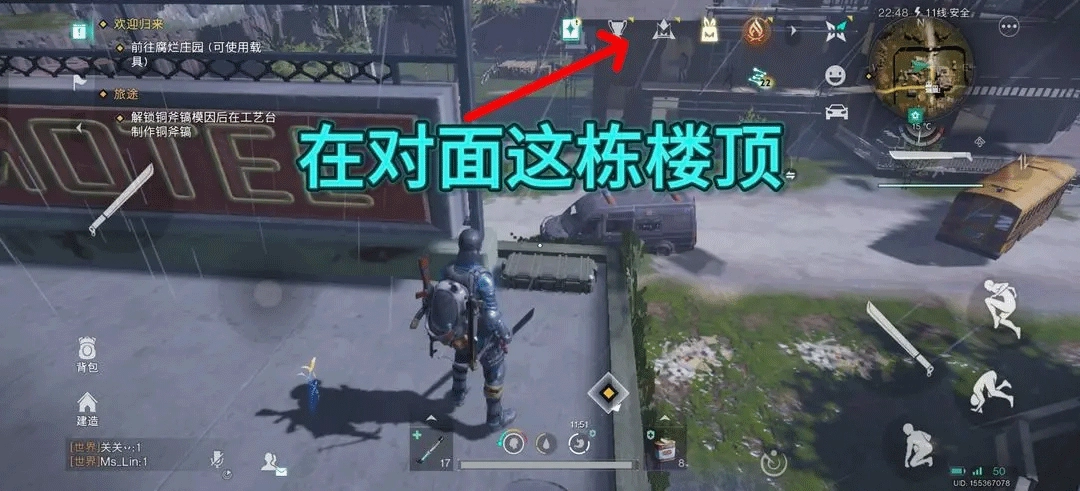 在第一个武器宝箱对面的那栋楼顶