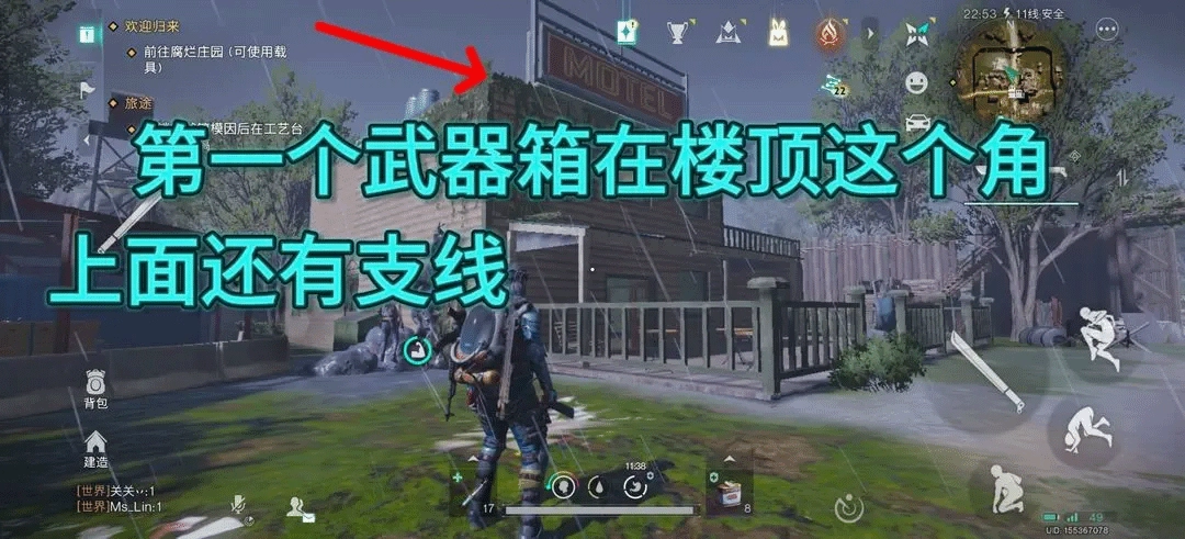 第一个武器宝箱在主线任务标记点的那栋楼楼顶
