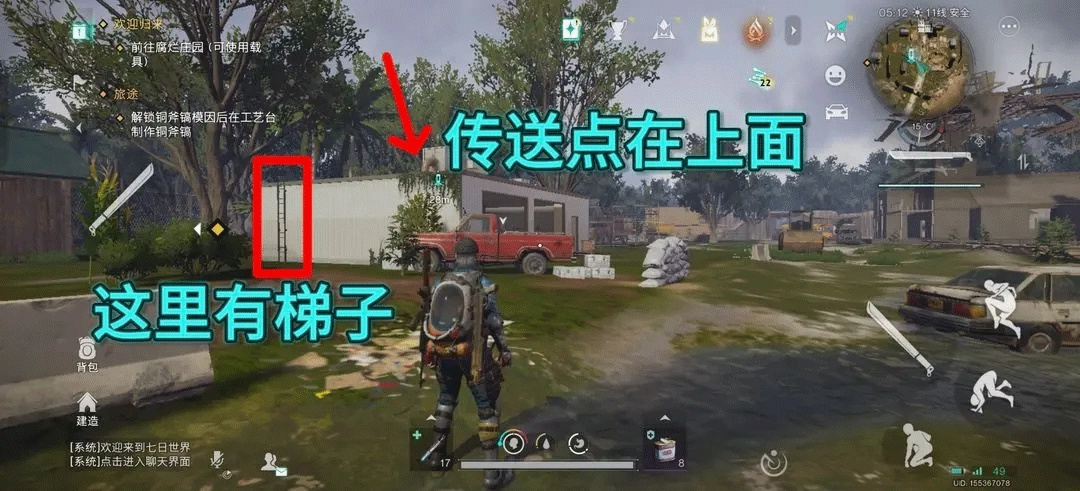 进入中途镇后,先把传送点激活,然后去左侧红车旁边的仓库顶部,那里有梯子可以爬上去。