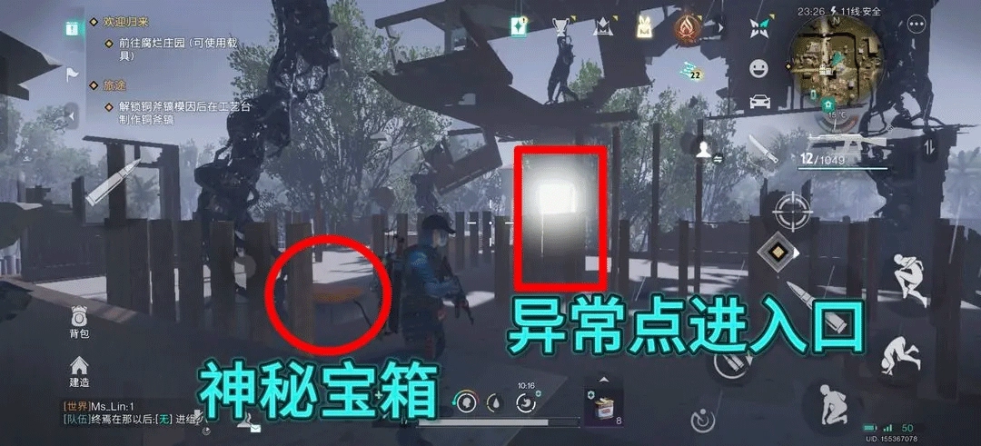 左侧为神秘宝箱,右侧为异常点进入口