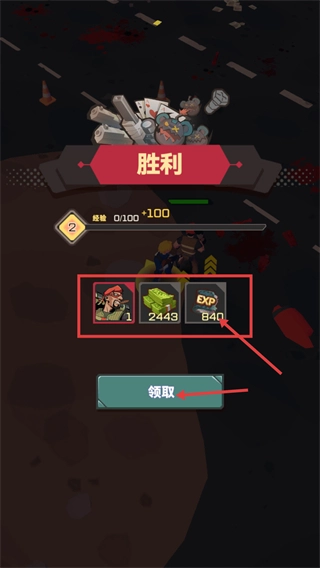 4、完成【胜利】目标后点击【领取】按钮,就能获得【2443】单位的资源以及【840】点【Exp】,并且等级进度会增加100点。