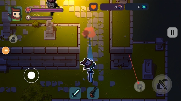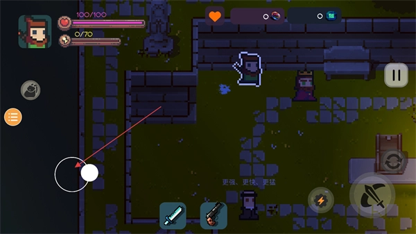 1、进入游戏地牢后,可借助左下角的方向轮盘操控角色移动。