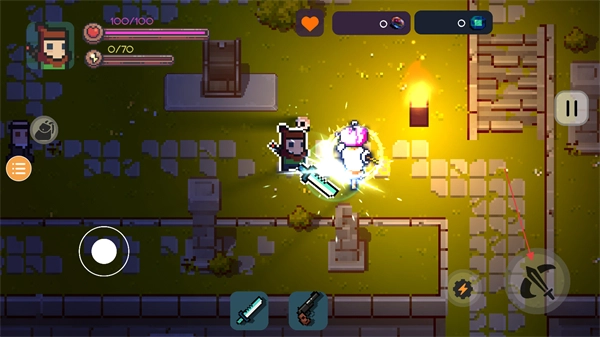 采用别具一格的复古像素画风,画面设计简洁,巧妙烘托出怀旧氛围,使玩家在冒险途中既能体会到游戏的独特韵味,又能专注于地牢闯关这一核心玩法。