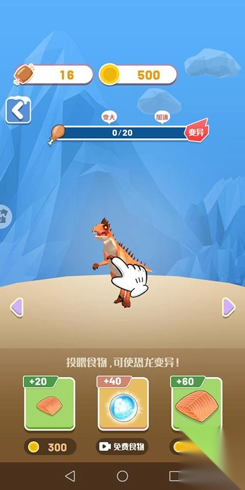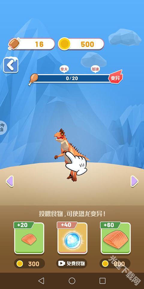 3、玩家在进入关卡前,能够给恐龙喂食,还有机会促使恐龙发生变异,从而让它们获得更强大的技能。