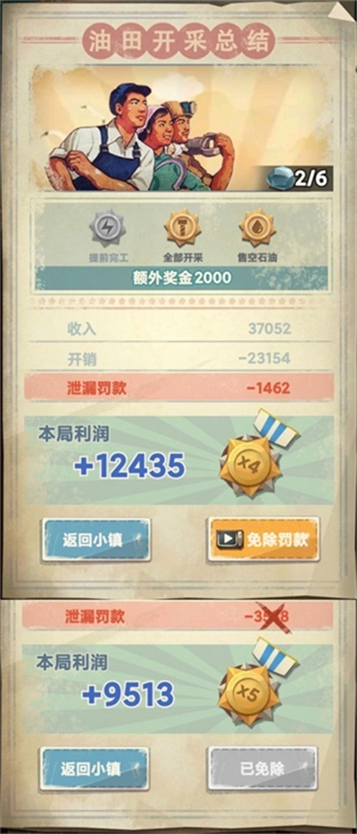 5、总结界面最多可获取7枚时代勋章,具体构成为:基础2枚、石油无泄露1枚、提前完工1枚、全部开采1枚、售空石油1枚、赚钱排行榜首1枚。