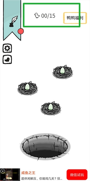3、创意互动:玩家把鸭子投进洞穴,就能解锁新的鸭蛋,这种充满巧思的互动设计,让游戏体验变得更充实、更有乐趣。
