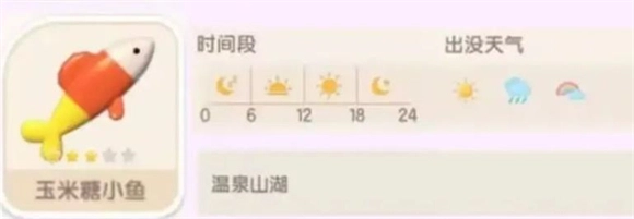 玉米糖小鱼会在温泉山湖区域出现,全天任何时间段、任何天气状况下都能见到它们的身影。